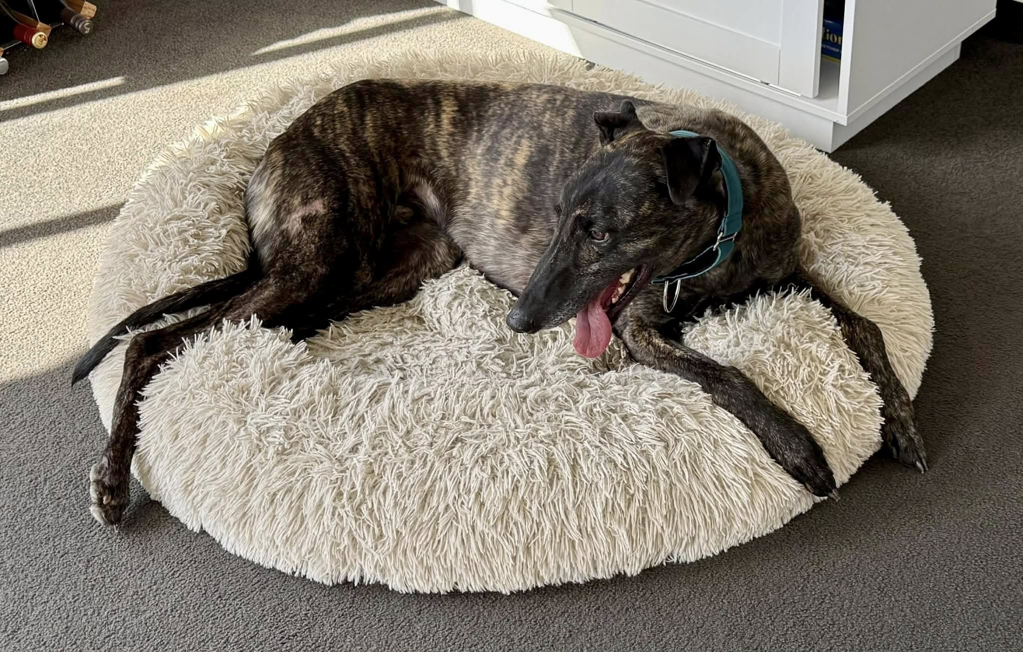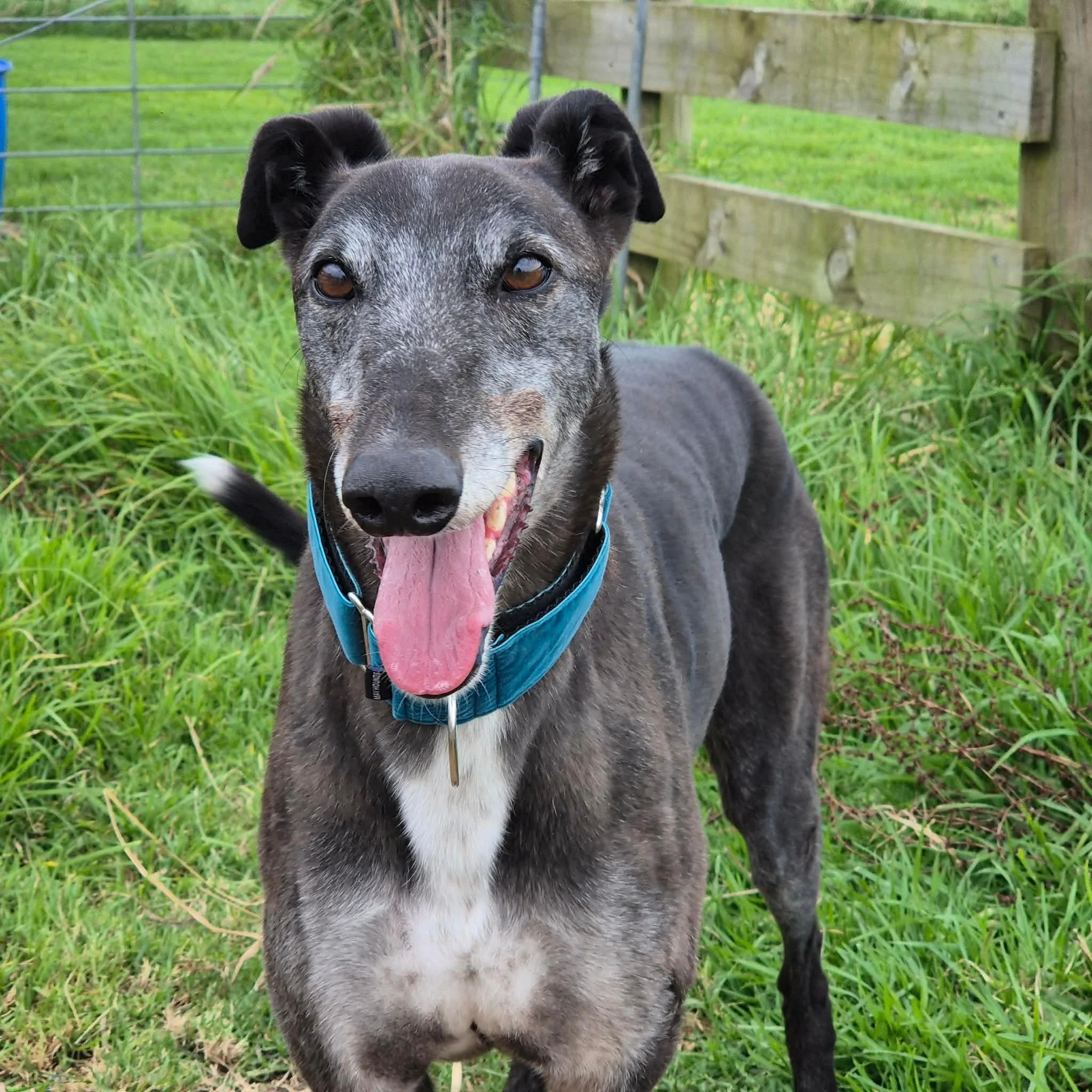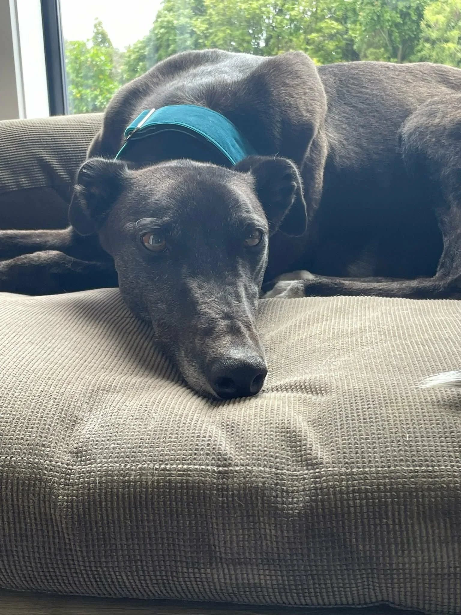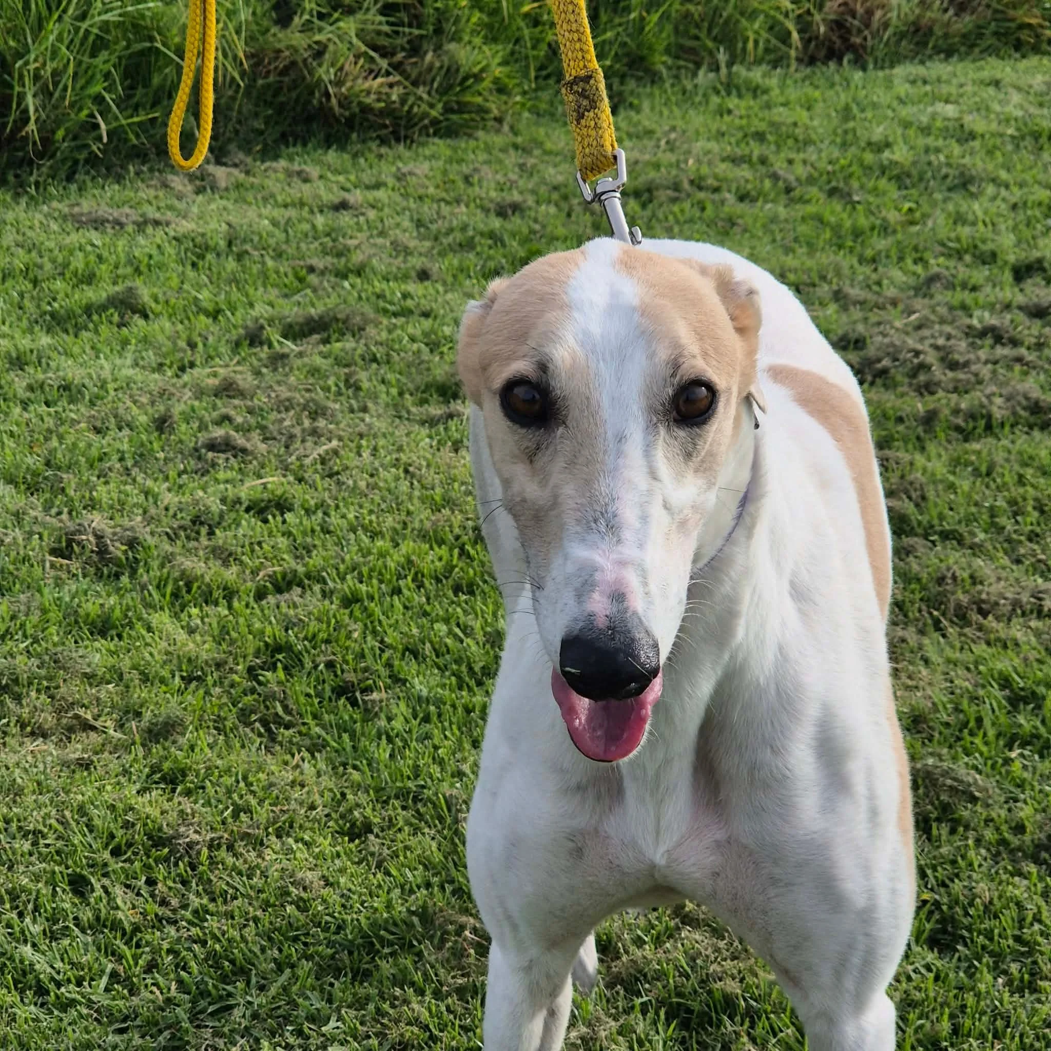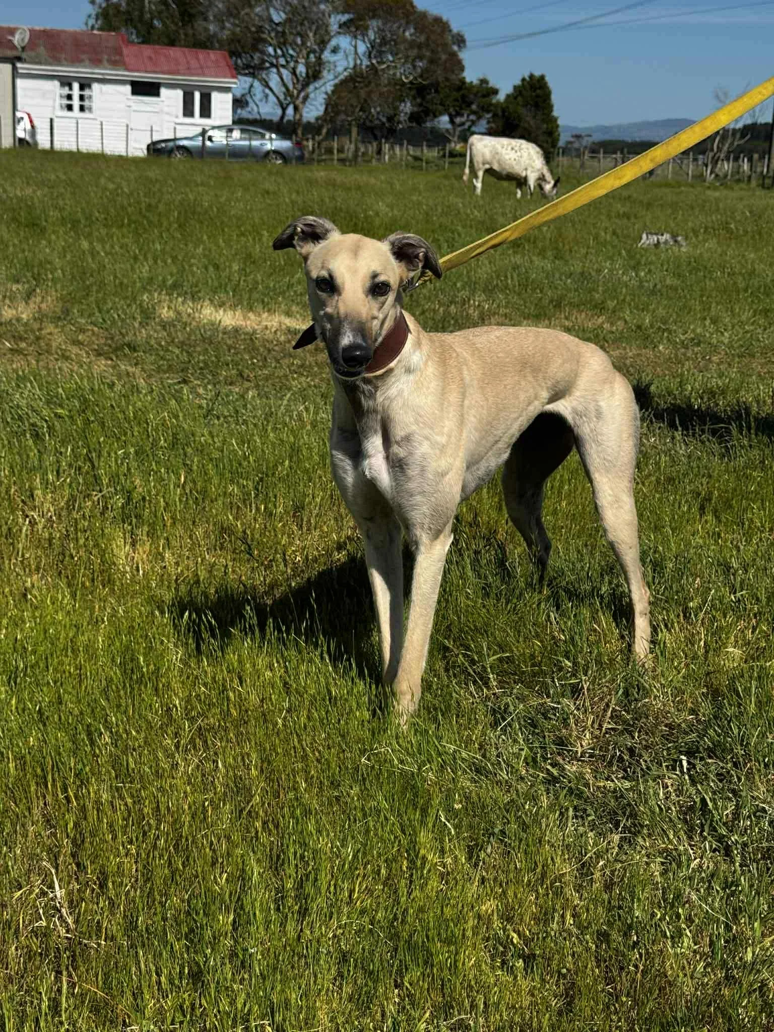 South AucklandLiam is settling into foster well and has already got to grips the play, eat, sleep routine ! When visitors arrives he's straight in for pats and will find the comfiest bed to lounge in at tv time. He likes a bit of space at times but can happily live with other compatible hounds. Although still getting used to small fluffies he is comfortable with larger breeds. Petite at just 30kg and with 4 white toes and a white tail tip Liam is a pretty little boy. He will be ready for adoption soon.