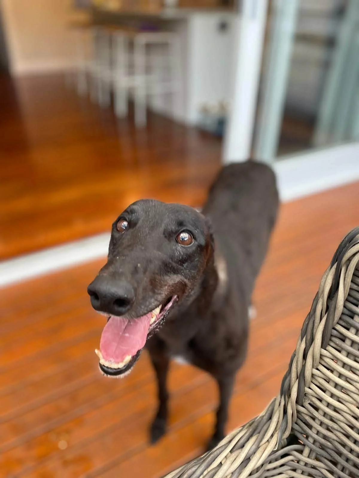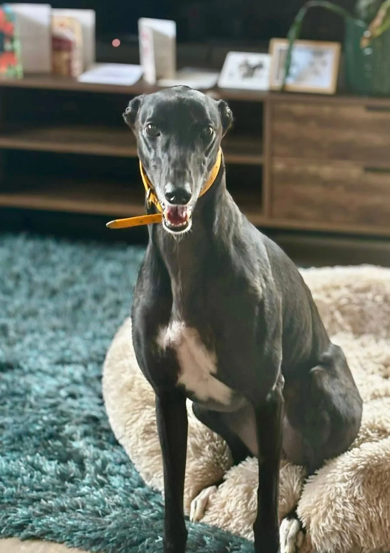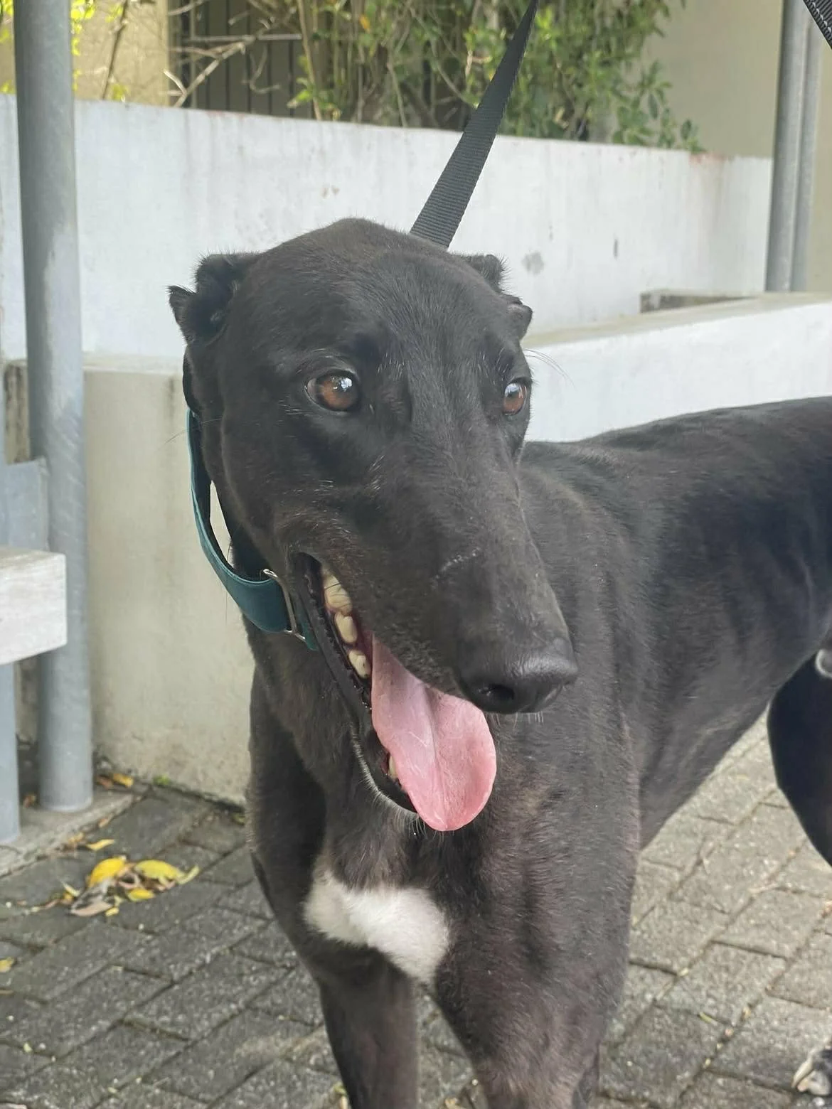 HamiltonA shy girl who would love a hound buddy (or 2) to hold her paw as she learns about pet life. A quiet home with humans who love being at home whether for work or play will be rewarded with a sweet, gentle, loving girl. Clara has taken a few months to relax into a home environment and her confidence is still building but should you open your heart to her she will show you that she has a little sass, a playful side and will smooch too. She would do best in a quiet home with a male greyhound (goofy males are her favourite!) who would be happy to play with her and show her the ropes.